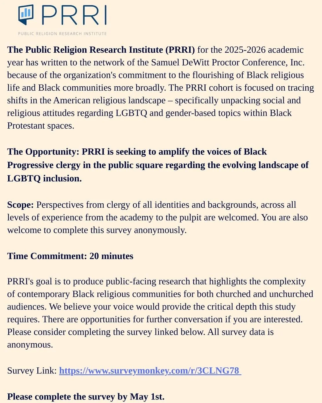 The mission of the Samuel DeWitt Proctor Conference, Inc. (SDPC) is to nurture, sustain, and mobilize the African American faith community in collaboration with civic, corporate, and philanthropic leaders to address critical needs of human rights and social justice within local, national, and global communities. SDPC seeks to strengthen the individual and collective capacity of thought leaders and activists in the church, academy, and community through education, advocacy, and activism.